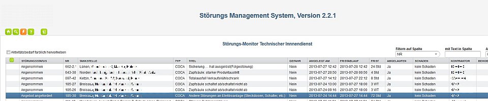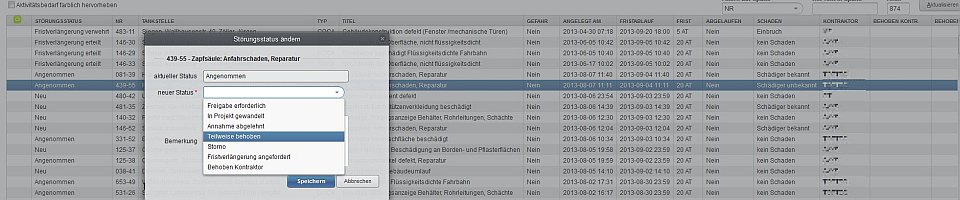 Der Kunde betreibt knapp 400 Tankstellen in Deutschland. Störfälle an den Stationen wurden bisher vom Pächter direkt an einen General-Kontraktor gefaxt, der im Anschluss für die Weiterleitung und Beseitigung der Störung zuständig war. Ein zentrales Monitoring über die angefallenen Störungen (ca. 50 .. 100 täglich) sowie eine Überwachung von Erledigungsfristen existierte nicht. Eine neu zu entwickelnde Webapplikation sollte hier Abhilfe schaffen.