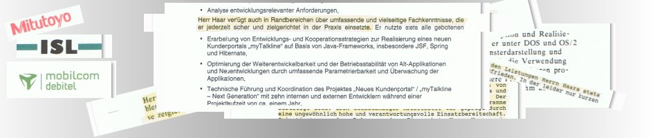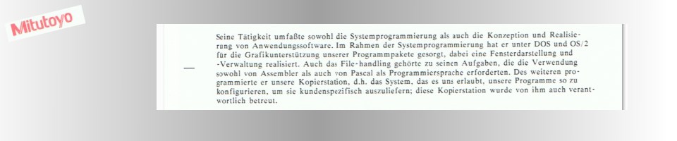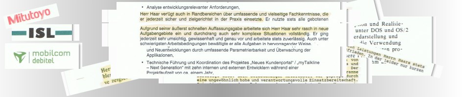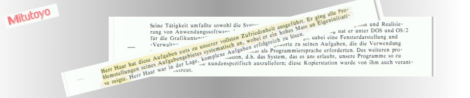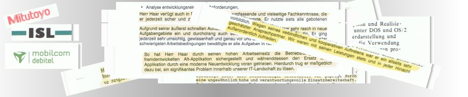 ...höchst professionelle Charakter der von ihm entwickelten Programme, ...selbständiger Arbeitsstil, ...ungewöhnlich hohe und verantwortungsvolle Einsatzbereitschaft
