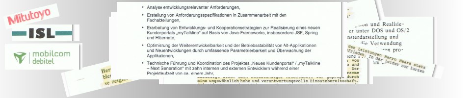 ...Konzeption, Entwicklung und Projektierung von Online-Applikationen für die Geschäftsprozesse eines Mobilfunkbetreibers.